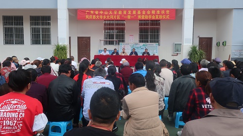 清风网讯(通讯员:鲁秀娟)10月30日,中山大学教育发展基金会精准扶贫凤庆县大寺乡大河片区 “一帮一”博爱助学金发放仪式在大河中学举行。