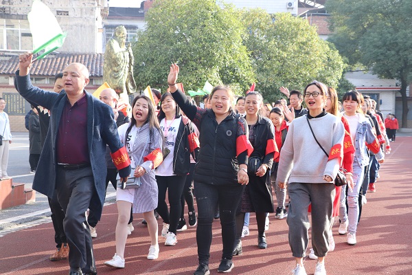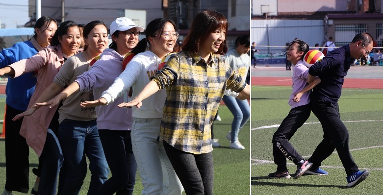 “方教师,加油!”、“李老师,你快点啊!”、“哈哈哈......这也太好笑了!”紧接着教师趣味运动在学生们的呐喊声中火热“上映”,老师们收起平时的严肃,加入到欢快的比赛中,他们互相鼓励、配合默契,赛场上掌声与笑声齐飞。欢乐的气氛和初冬的暖阳让整个运动场地变得活力四射。此次趣味运动会有效缓解了教师们的工作压力,展现了教职工团结协作、奋力拼搏的精神风貌,营造了轻松和谐的校园氛围。