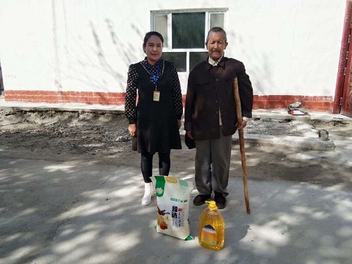 拜城县文化体育电视和旅游局驻米克乡库木墩村工作队队员吐逊古丽·阿西木在走访过程中了解得知71岁的阿巴斯·买买提最近小腿骨折了,妻子在外捡棉花而不在家,女儿又在上大学,家庭本来就不富裕的阿巴斯·买买提来说是雪上加霜。