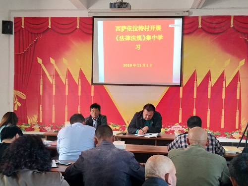 清风网讯(阿瓦提县发改委驻丰收片区西萨依拉特村工作队 董文勇)为了进一步提高村级党员干部的法律意识,2019年11月1日,西萨依拉特村工作队牵头,村委会组织全体党员干部利用学习“不忘初心 牢记使命”集中学习时机,重温了学法用法知识。此次参加人员合计28人。