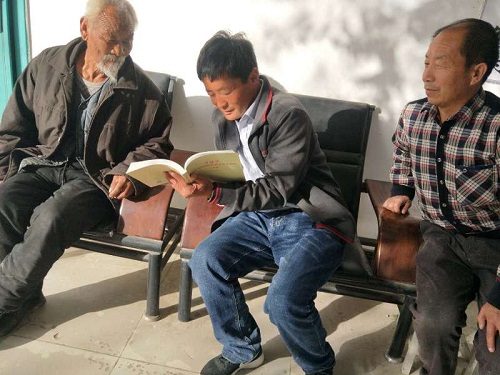 家住西萨依拉特村1组15号的老党员孙祥同志,他看到村党支部工作人员的到来非常开心,工作人员详细询问了老人最近的生活状况,并嘱咐他注意身体有困难及时和村委会联系,亲切的话语让老党员倍感温馨,他抚摸着学习资料激动地说:“虽然我年纪大身体不太好,但我心里一直惦念着党,希望还能看到与党有关的书籍。感谢党组织还没忘记我,给我送书,给我精神支柱,我真的很高兴,非常感动,没有共产党就没有新中国。”
