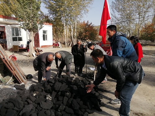 为切实解决困难群众冬季供暖问题,在冬季到来之际,为生活困难群众送去温暖,是我们工作队和村两委的暖心工作内容之一。为他们送去党和政府的关心关怀,为困难户解决燃“煤”之急,确保困难群众能过一个温暖的冬天。按照每户一吨的发放标准,党员、干部将自家的三轮车带来,一趟趟将大家的煤炭拉到生活困难的建档立卡贫困户、低保户、残疾群众家中,看着这一车车的煤炭送到自己的家中,天气渐渐寒冷,但是大家心中都暖呼呼的,村民卡德尔·肉孜笑着说:“村里的工作队和村干部经常到我家来帮我干农活、帮我打扫庭院,不仅帮助我们家解决了劳动力不足的问题,还帮我申请了低保救助。有他们一直帮助我们,让我们老两口的生活一天比一天好,今天还给我们送来了过冬煤炭,保证让我们过上一个温暖的冬天,这都是国家的政策好,我们赶上了好时候,我很高兴,衷心感谢。