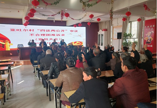 10月30日,亚吐尔乡亚吐尔村召开党员大会就近期征集和梳理的2条不合理困难诉求进行商议。