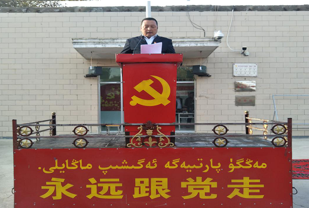11月4日,利用周一升国旗仪式,亚吐尔村党支部书记向全村干部群众公开不合理困难诉求具体内容及解决结果。