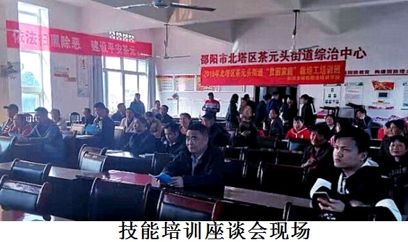 清风网邵阳讯(通讯员 岳志勇 刘志坚 邓琴)11月14日,邵阳市北塔区人力资源和社会保障局在该区茶园头街道办事处开展扶贫技能培训座谈会,局长杨旭东、副局长付日晖等相关负责人到会指导。