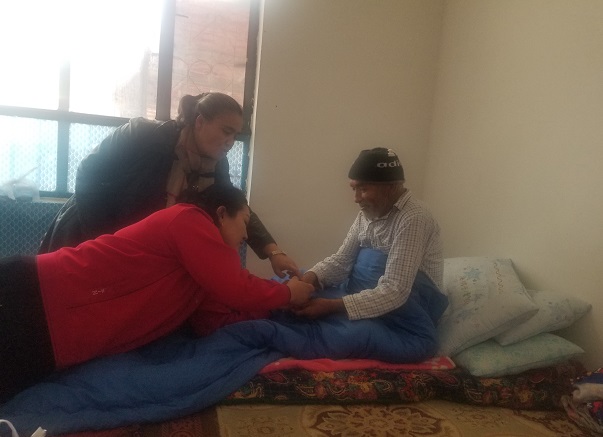 今年74岁的吾斯曼·亥外依拉是该村建档立卡贫困户,患脑梗阻前期在阿瓦提县医院进行治疗,花费三万余元,因享受党的惠民好政策,在支付医疗费用时,自己实际支付八百元左右,极大的减轻了家庭负担。出院后,吾斯曼·亥外依拉在家中休养,因脑梗阻的后遗症,落下了偏瘫的病根,害怕无力承担后续治疗的费用,一直卧床在家。工作队针对这一情况,及时跟进再次宣讲党的惠民好政策,帮助其解除思想上的负担,并帮助吾斯曼·亥外依拉积极联系阿瓦提县医院中医科,进行后期的康养治疗,帮助其尽快恢复。