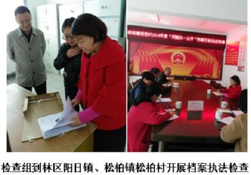 林区档案局组成检查组根据《中华人民共和国档案法》及其实施办法的规定和省政府有关要求,在全区“随机抽取检查对象,随机选派检查人员”,先后对阳日镇人民政府、发改委、松柏镇松柏村、文化和旅游局、劳动就业局等10个单位的档案工作体制、制度建设、档案统一管理、档案安全保管、档案利用情况、是否存在档案违法违纪行为等进行执法检查。