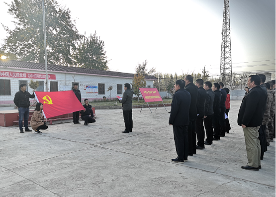 “我志愿加入中国共产党,拥护党的纲领,遵守党的章程,履行党员义务,执行党的决定……”在鲜红的党旗下,全体党员高举右拳,字字铿锵,重温入党誓词,彰显了党员干部不忘初心、牢记使命的坚定政治信念。