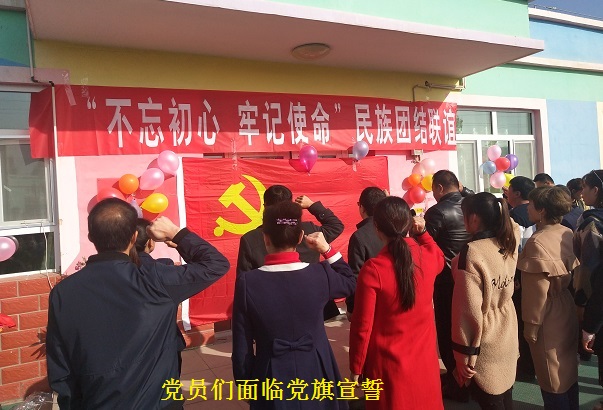 最后参加活动的党员们面临着党旗庄严的举起右手,重温入党誓词:“我志愿加入中国共产党,拥护党的纲领,遵守党的章程……”铿锵有力的宣誓声,加强党性锻炼,进一步坚定理想信念、激发爱国热情、凝聚奋进力量,为扎实开展“不忘初心、牢记使命”主题教育注入思想动力。