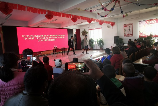 清风网讯(拜城县委统战部:丁先斌) 2019年11月9日一大早,300多名群众迫不急待的来到牙斯热木英阿依玛克村大会议室。因为今天阿克苏地区塔里木歌舞团“我们的中国梦、文化进万家”送戏下基层文化惠民演出要在这里进行。