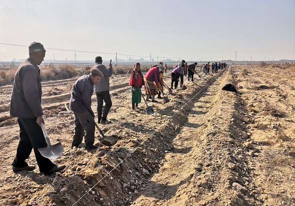 现场,干部群众分工明确,热情高涨,挥动手中的十字镐、铁锨挖坑铲土捡石头,有的负责开沟平埂、有的负责挖树坑、有的负责捡石头,各个环节衔接有序、配合默契,整个过程一丝不苟,现场呈现出一派热火朝天的劳动场景。经过2天的努力,共开沟平埂4325米,开挖树坑883多个。村干部吐尔逊·热合曼表示,这是一件非常有意义的活动,既为明春植树做了准备,又提高了团队凝聚力,学习到种树知识,播种绿的希望。