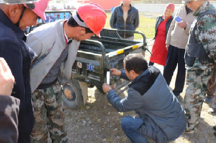 在宣传教育活动后,大宛其托万买里村安全生产负责人阿不力克木同志为村民发放三轮摩托车反光贴,并讲解反光贴的正确贴法,确保在生产生活能充分保障群众的生命财产安全。