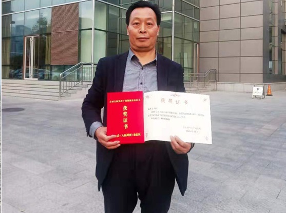 图为11月12日,见到记者,韩庆全心手恭捧中共中央办公厅送给他的的机要批示件及《人民日报》发表他创立新路子的重大新闻,格外自傲丶荣幸与感恩。(李法明摄)