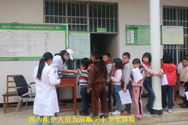为了使学生课时不受影响,专业技术人员携带专业体检器材,深入教学点,上门服务,对每个学生的形体指标(身高、体重等)、常规、生理功能(肺活量等)以及五官、视力等八个项目进行细致地体检,对体检的结果作了详细记录。体检过程中医护人员对如何养成良好卫生习惯、营养均衡、传染病预防等健康保健知识进行了着重普及。在学校的统筹安排下,学生按年级次序进行各个项目的体检,整个过程井然有序。