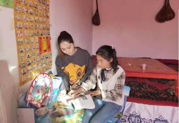 “大姐姐,你快过来,我又有几道题不会做了”,拜城县克孜尔歌舞团驻拜城县米吉克乡欧勒旁村工作队员希仁古丽·努尔在走访3组贫困户艾则孜·沙吾提家时,他的女儿开心的喊道。希仁古丽·努尔走访时不仅给孩子们辅导家庭作业,在关心贫困户生产生活的同时,还实地了解贫困村民的生产生活诉求,并详细核对排查贫困户家张贴的明白卡、医疗、养老等相关保险补贴享受情况等。