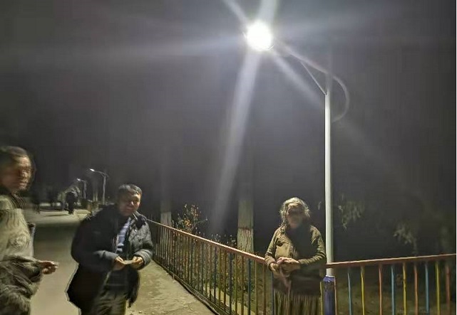 每一盏灯发放时村民脸上都洋溢着喜悦的笑容,每一盏灯安装时村民都小心翼翼,经过了1个星期的安装调试于11月7日21点全部点亮。看着亮如白昼的道路,村民们由衷的感叹:我们亚吐尔村的黑夜现在和白天一样亮,我们以后出门再也不用打手电了,感谢工作队,感谢共产党。