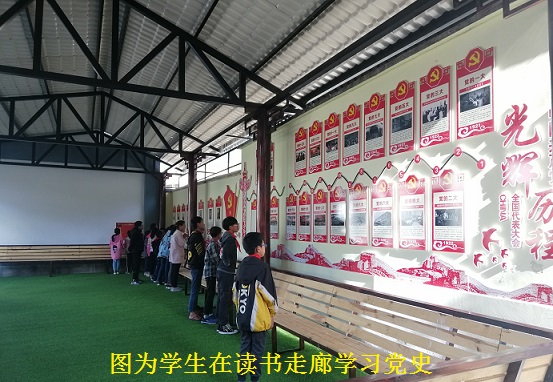 党支部坚持以“党建统领立德育人”为主线,结合“不忘初心、牢记使命”主题教育,建设了以“学党史 铭党志”为主题的党建文化长廊,作为对师生进行爱国主义和人文历史教育的活教材,开展红色教育、德育教育、感恩励志教育,将国史、党史浸润师生心灵,使学生从小培养树立起热爱党、拥护党、感恩党的思想意识;设置“我最喜爱的习言习语”专栏,展示该校党员干部最喜欢的习言习语;建设党建文化长廊,潜移默化地提醒党员教师争优秀、做标兵,不忘初心、继续前进,积极为党和人民的教育事业做出贡献;设置墙壁书画、诗词等特色文化版块,精心打造文化校园、质量校园、学习家园。