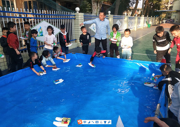 彭宇老师向同学们讲解了本次比赛的规则后,比赛正式开始。随着裁判员的一声哨响,第一位同学郑重地将自己的海模掷了出去,然后裁判员认真比对海模游行距离,做好登记。紧接着,第二位,第三位......一架架海模在水池中时而直行,时而转弯,时而回旋,孩子们则不时发出惊叹声、欢呼声。整个比赛场地犹如一片欢乐的海洋!