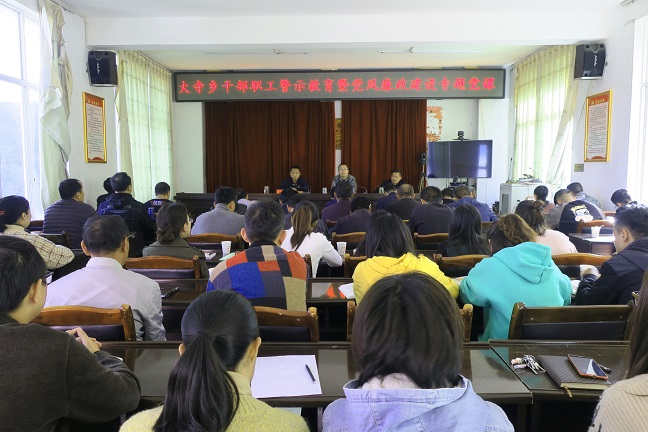 清风网讯 (通讯员 鲁秀娟) 为加强大寺党风廉政工作,进一步增强党员干部廉洁自律意识,提高乡村党员干部整体素质,切实改进工作作风,11月19日,大寺乡结合“不忘初心、牢记使命”主题教育开展,乡党委书记为我乡机关干部职工和各村“两委”成员上了一堂内涵丰富、意义深远的廉政党课。