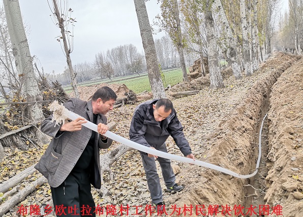 近日,拜城县布隆乡欧吐拉布隆村5小队长向村委会、工作队反映,供全小队村民生活用水的主管道多处出现跑冒滴漏的情况。自治区烟草专卖局驻村“访惠聚”工作队队长、第一书记金涛第一时间带领村党支部书记、工作队员等现场查看,询问核实情况,经了解该自来水主管线全长2000多米,已经使用了20多年,并且水管管径较小,在用水高峰时段不能满足居民生活饮用水的需要。为了从根本上解决村民饮用水问题,工作队决定立即购买新水管,雇用挖掘机,更换老化的主管线水管。经过4天的紧张施工,水管更换完毕,村民们又喝上了自来水。