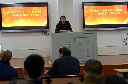 清风网邵阳讯(通讯员 张治龙) 为了总结经验,激励先进,赶超优秀,进一步营造良好的育人氛围,11月20日,武冈三中在教师会议室召开八年级半期工作总结会,参加会议的有八年级全体任课教师。