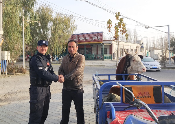 随后民警有通过调取监控、走访辖区居民和社区干部,才最终联系到牛主人安外尔·麦合木提。原来,在安外尔·麦合木提外出访友期间,没想到自家的奶牛和牛犊跑出牛圈,并不慎跌入水渠。看到两头牛脱离危险、安全无恙,安外尔·麦合木提又激动又感动,便出现了文章开头的一幕。