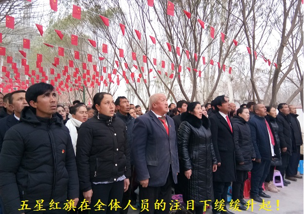 乐曲结束时,五星红旗在玉斯屯克帕万拉村村委会大院的上空迎风飘扬,每一位村民和干部的脸都在朝阳中显得格外生动和明媚。