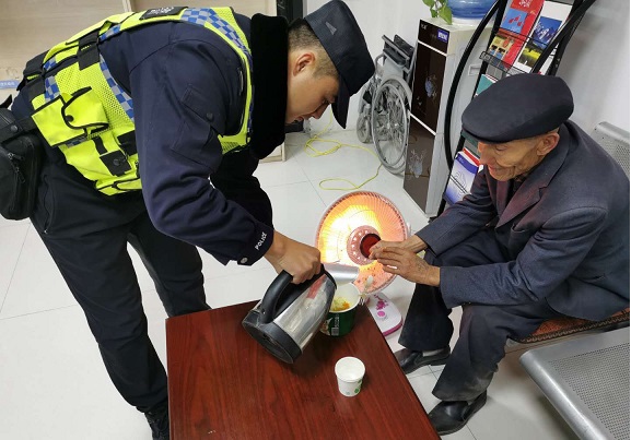 11月23日凌晨3时许,沙雅县公安局玫瑰花园便民警务站开展夜间巡逻时,在辖区大巴扎停车场花台边发现了蜷缩在广告牌下的老人。此时,正值寒冬,气温已降至零下,冷风刺骨,老人瑟瑟发抖,嘴唇已冻得发紫。见此情况,民警黎袁立即将老人带回警务站,给老人找来电暖气为老人取暖,又倒上热水和食物给老人充饥。待老人体温恢复正常后,民警耐心询问老人的姓名、住址以及家庭情况。老人却只能回答出自己名字叫甫拉提,今年60岁,具体住址、家中其他人联系方式都无法回答。