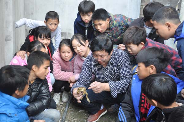 清风网邵阳网11月28日讯(通讯员 陈远志 李琼志) “老师,这是什么?”“这是蟾蜍,又叫癞蛤蟆,是两栖动物,它的皮上有很多疙瘩,疙瘩里有毒腺,和腮腺一起分泌毒液,蟾蜍的肉、皮肤等都有毒,腮腺和鼓膜的含量最高。吃蟾蜍的任何部位都可能会引起中毒。”11月28日,隆回县金石桥镇中心学校的生物辅导老师正在指导留守学生认识蟾蜍。这是该校组织留守学生开展“第二课堂”兴趣活动的一个剪影。