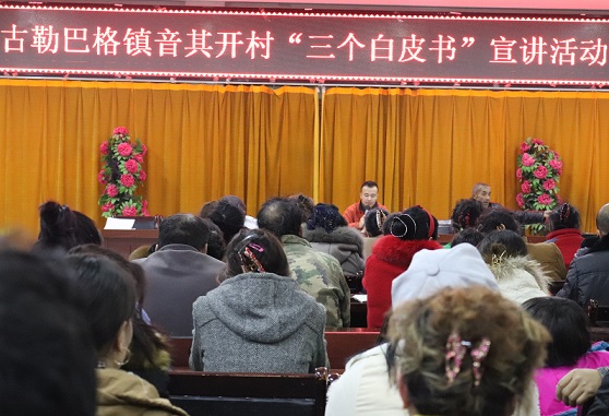 清风网讯(阿克苏地区财政局:戴强)连日来,阿克苏地区财政局驻沙雅县古勒巴格镇音其开村工作队结合“冬日暖阳”活动,采取“三结合”方式积极宣讲《新疆的反恐、去极端化斗争与人权保障》《新疆的若干历史问题》《新疆的职业技能教育培训工作》白皮书,及时把三个“白皮书”的精神传到广大群众心中。