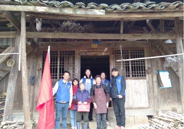 清风网邵阳讯(通讯员:陈远志 袁楚铁) 12月28日,隆回六中团员志愿者一行在校团委书记袁楚铁带领下,冒着严寒来到金石桥镇新良村贫困户郑大长(86岁)老人家,开展走访贫困户扶贫慰问活动。
