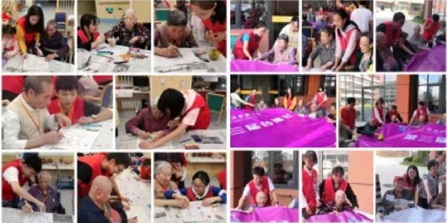 享画画之乐,促动笔脑力。志愿者们引导并帮助老人们发挥自己的想象力和创造力,让老人们在绘画中找寻记忆,在动手中恢复肢体机能。