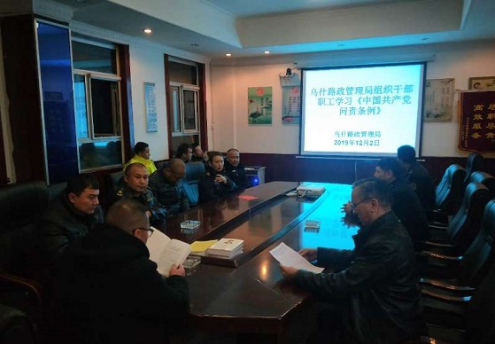 清风网讯(乌什路政管理局:陆健 安尼卡尔•艾尼瓦尔) 为深入贯彻《中国共产党问责条例》的精神和要求,12月2日乌什路政管理局组织干部职工深入学习最新修订的《中国共产党问责条例》。
