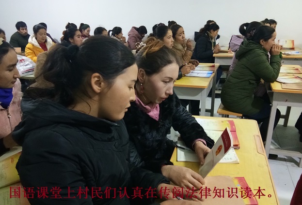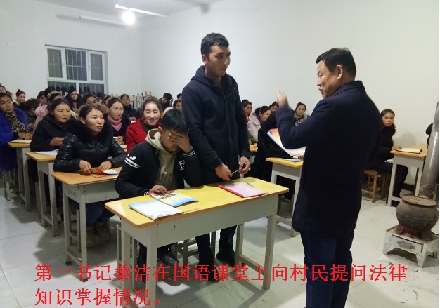 与以前不一样的是,在国语夜校“访惠聚”驻村工作队和村干部不再单纯的给村民们上国语课,而是在课堂上与村民们一起学习宪法知识。