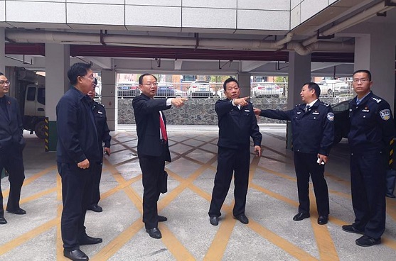 在鹤城区法院党组书记、院长荆亮的陪同下,曾亚杰总队长一行首先实地查看了该院安检通道、刑事审判庭、羁押室、电子监控系统、警务指挥中心等警用设施配备,对法警队办公室场所、装备档案、警容警纪进行了检查,并对人员、装备、车辆配备情况进行了详细询问,曾亚杰总队长对该院司法警务工作给予充分肯定,他强调:一是安保工作无小事,每位领导和干警必须加强安全意识,担起安全责任;二是法警工作服务审判,每名法警要切实认真履职,做好审判辅助工作;三是加强队伍思想建设,每名法警要加强责任心,对待工作不可有一丝丝懈怠。