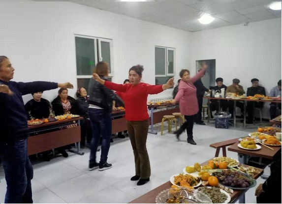 活动在辖区德高望重的老党员艾山·阿布都外力热情洋溢的讲话中拉开了序幕。他说“在新疆,民族团结是各族人民的生命线,我们要像爱护自己的眼睛一样爱护民族团结,只有我们人人爱护民族团结,我们小区才能和谐幸福”。随后,大家一边品尝热心居民在家烹炸好的各种糕点和制作好的精美凉菜,一边吃着各种水果,叙着家常,一边欣赏着大家自编自演的歌舞,一曲曲麦西来普更是把联谊会推向了一个又一个高潮,干部和居民一起翩翩起舞,轻盈的舞姿无不抒发着对党无限的热爱和对美好生活的无限憧憬。幸福的笑容洋溢在开心的脸上,现场欢声笑语,居民欢聚一堂,其乐融融,好不热闹。