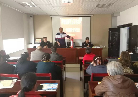 宣传活动由社区综治主任张俊智主讲。他首先根据辖区居民的住宅、生活和生产情况进行了火灾常识的宣传,他从火灾的特点,制止火灾发生的基本措施和灭火方法等几个方面详细进行了安全知识的普及。他重点强调了灭火原理是为了破坏已经产生的燃烧条件或使燃烧反应消失,他还结合灭火器原理例举了大量的实例,给大家讲解了冷却法、窒息法、隔离法、抑制法等四种常用灭火方法以及发生火灾后的应急措施及逃生的方法。随后,他还就对常用灭火器的使用方法进行了规范演示,他讲到拿到灭火器后,拔掉保险栓,上下颠倒几次,用手提着压把,直接将喷口对准火焰后压下压把,左右摆动,使得喷射干粉覆盖整个燃烧区。通过宣传,让生活在协里克买里社区的居民真正了解生活安全全方位的知识,以次提高社区居民的安全忧患意识,增强居民应对特殊安全情况的能力,有效营造重视生活价值,关爱生命安全的浓厚氛围。在培训会上还给居民发放了拜城县应急安全知识手册,共计一百余份。