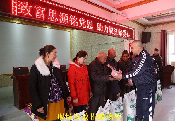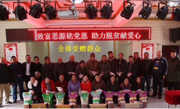 12月4日,阿巴斯·库尔班以合作社的名义向索克满村20户贫困家庭捐赠了价值1万元的20袋面粉、20袋大米、20桶清油、5只羊,旨在通过自己微薄捐赠,让困难群众度过一个暖心冬天。