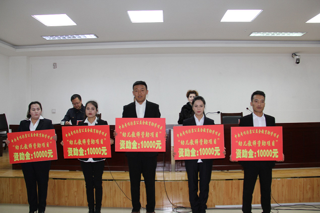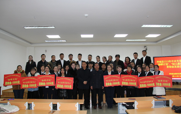 清风网讯 (拜城县教科局 王志华) 12月7日,拜城县教科局举行了2019年度中央专项彩票公益金“励耕计划”、“幼儿教师资助”资助金发放仪式,共发放资助金41万元,受助教师41人。教育工委副书记、教育局党组书记段文峰、受助教师、相关科室负责人50余人参加了发放仪式。