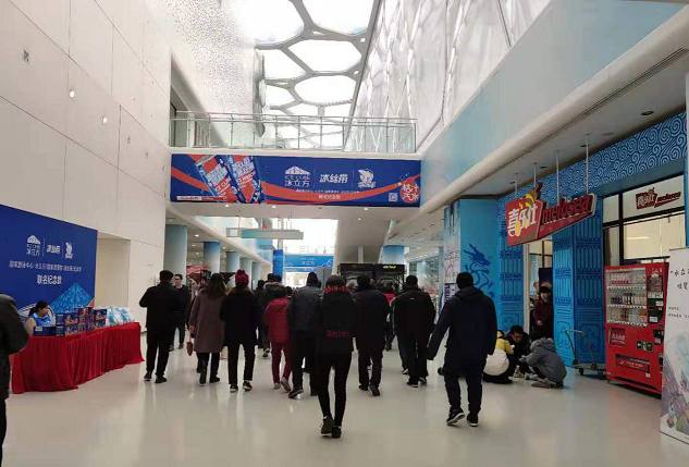 当走进水立方时,村民都不禁地“哇”一声叫了起来,里面太美了。首先吸引眼球的是那个由无数规则不一、方圆不定的块状组成、通明透亮的天花板。馆内北面上方悬挂着世界各国的国旗,跳台的上方也挂了不少外国国旗,把整个场馆装饰得绚丽多彩,使人眼花缭乱,目不瑕接。