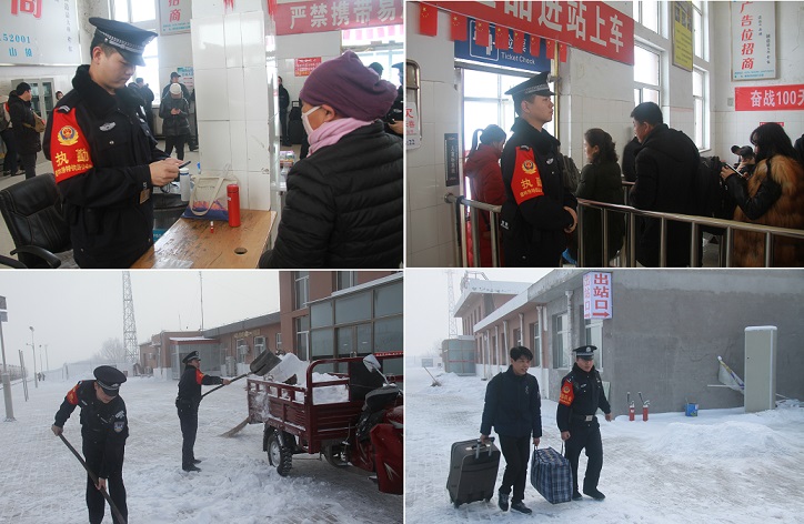 期间,一是增派警力上岗,积极配合客运部门做好乘降秩序维护工作;二是加强实名制查缉比对及三品查危工作;三是积极开展创先争优、服务旅客活动,主动帮助困难旅客提拿行李,扶老携幼,配合车站等单位清扫广场积雪;四是密切掌握沿线降雪情况,加强线路重点区段隐患排查,做好应急处突准备工作,畅通信息报送渠道。