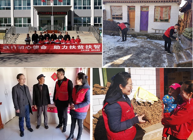 志愿者一行首先到马蹄沟村学校,为贫困留守儿童送去书包、文具、体用用品等,随后又跟随驻村干部步行到困难户家中,了解他们的家庭和孩子上学情况,帮助他们清扫院内积雪,以实际行动践行初心和使命。