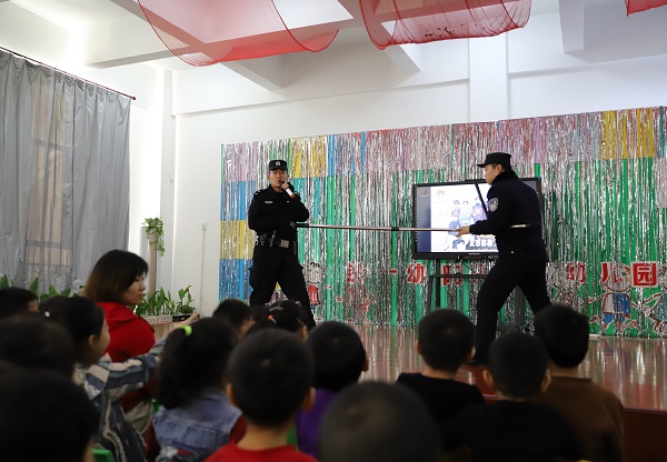 “小朋友们,如果有坏人来到幼儿园,你们要怎么办呢?”“我知道,我知道……”面对警察叔叔的一个个提问,小朋友们纷纷踊跃举手回答。民警将一本本印有安全小知识的漫画书送给幼儿园小朋友,通过寓教于乐的互动方式让孩子们记住了许多安全小知识。