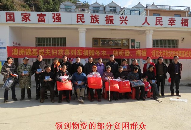 据悉,本次捐赠活动,是由湖北师范大学钟立群老师牵线搭桥,也是第四次来到英山开展献爱心活动的。捐赠的棉衣、棉被、助听器等全部来自于“澳大利亚魏基成慈善列车”项目的捐赠。魏基成先生生前是澳大利亚ABC家用制品有限公司董事长,知名旅澳华人、慈善家。他一生致力于慈善事业,用自有资金成立慈善基金会,建立了帮助听障人士的“天籁列车”、帮助白内障患者的“光明列车”和帮助自然灾害受难者的“慈善列车”三个慈善活动品牌,为中国的慈善事业作出了积极贡献。