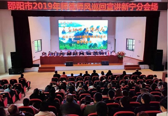 清风网邵阳讯(通讯员 唐海龙 王海常 黄彬) 12月12日上午,邵阳市师德师风巡回宣讲团走进新宁,为来自全县16个乡镇100多所学校的500多位老师奉献了一堂师德师风盛宴。邵阳市教育局机关纪委副书记张文峰做了动员讲话,新宁县教育局局长陈震做了精彩点评。