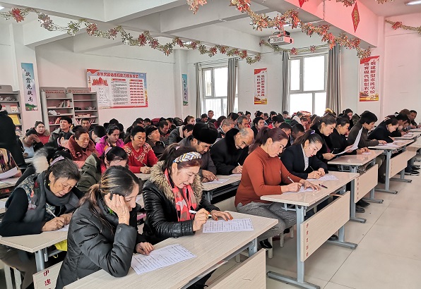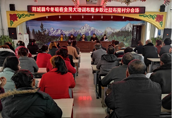 清风网讯 (自治区烟草专卖局:彭加录)为进一步加强各族群众对党的十九届四中全会精神和习近平新时代中国特色社会主义思想的认识和理解,不断强化农牧民群众爱国感恩和诚信守法意识,欧吐拉布隆村按照拜城县布隆乡关于开展今冬明春“大培训、大宣讲、大解困”活动要求,根据年龄结构、知识结构、工作群体等进行了分班定人,690余人编入9个班,每个班培训周期为一周,每期进行成效检验和排球、拔河、知识竞赛等联谊会,计划3月中旬该培训结束。