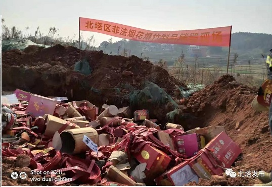 为认真开展好此次非法烟花爆竹集中销毁行动,北塔区安委会精心准备、周密部署,邀请安顺烟花爆竹公司专业人员对收缴的礼花炮、鞭炮等进行分批分类放置,认真细致地布置好现场,梳理好每一个环节,确保整个销毁行动万无一失。事后,消防大队与其他工作人员一起,对销毁现场进行清理,确保现场不留任何安全后患,圆满完成此次非法烟花爆竹的销毁工作。