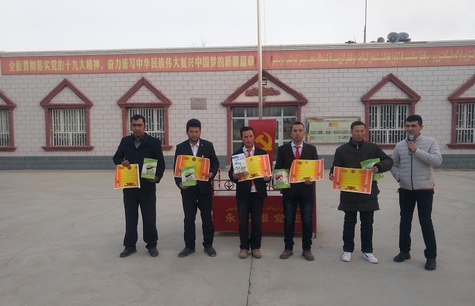 清风网讯(拜城县林业和草原局:孟玉秀)为深入推进脱贫攻坚,变冬闲为冬忙,实现干部和贫困群众培训全覆盖,大大增强干部群众脱贫攻坚能力。亚吐尔乡欧勒旁村于2019年12月份开始,组织村里的18岁至65岁之间的男女村民群众进行“冬季攻势”学习培训活动。授课人员有“访惠聚”工作队队员、包村领导、乡下派干部、返乡大学生等,培训的内容主要的党的十九大精神、冬季安全生产、小麦玉米种植技术、葡萄种植管理技术、妇女权益保障、畜牧养殖技术等知识。为激发村民群众参加学习活动的积极性,欧勒旁村并于2019年12月16日早上升国旗仪式后,对第一批学员中评选出的5名优秀学员进行了表彰,鼓励村民群众好好学习,提高自我发展的能力,实现转移就业,创业就业,增加收入,摆脱贫困,为打好脱贫攻坚战夯实基础。