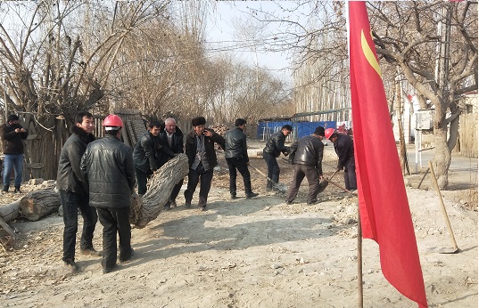12月16日,在英艾日克镇玉斯屯克帕万拉村帕旦木·吾休尔的院内,党员同志们挥着铁锹、抡着坎土曼、抬着大木头,心往一处想、劲往一处使,团结一致,干劲十足,充分发挥着党员先锋模范作用,稳妥推进脱贫攻坚“冬季攻势”工作顺利开展。