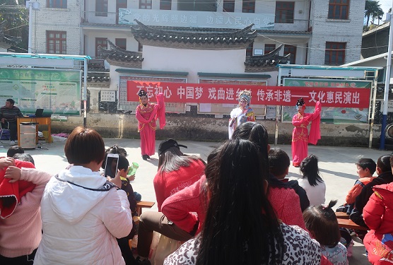 活动在《不忘初心 中国梦》中拉开序幕,《打赢脱贫攻坚战》、滇剧小戏《红灯记》、京歌《梨花颂》、滇剧《黛玉葬花》等节目轮番上演,以不同的演艺形式传播滇剧文化,颂扬党的好政策,表达享受美好生活的喜悦之情。乡亲们纷纷用手机定格下一个个精彩瞬间,争相分享这场文艺盛宴。